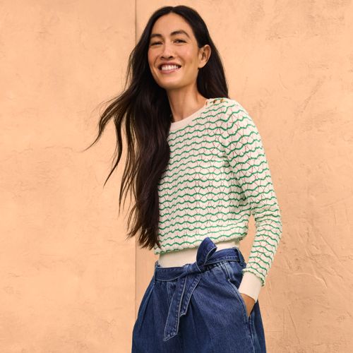 Pull Pointelle avec Boutons sur Epaule, Femme Stature Standard